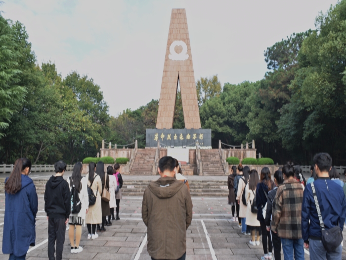 本网讯(文/摄 吴素娟)参观烈士陵园,感悟革命精神。11月10日上午9点,beet365第57期入党积极分子培训班前往芜湖市烈士陵园,祭奠遇难同胞。
