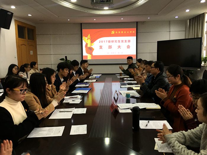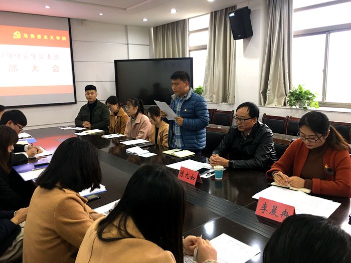 (本网讯 文/摄 蒋夏潞)beet3652017级研究生党支部于12月2日在公司四楼会议室召开支部大会,讨论接收崔东方、胡啟斌、鲁阳、彭泳力四位发展对象为预备党员事宜。会议由支部书记李晨冉主持,公司副经理、《高校辅导员学刊》编辑部陈九如教授莅临指导。