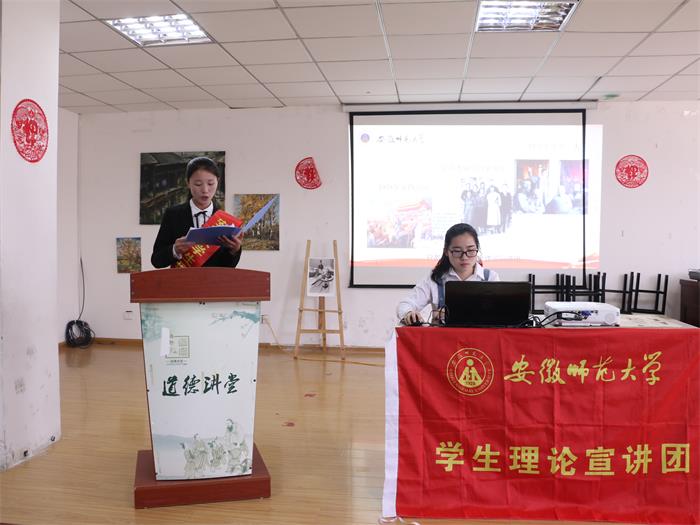 宣讲员结合十九大报告,分别以“不忘初心,砥砺前行”、“把握新思想精髓,奏响新时代强音”、“青年兴则国家兴,青年强则国家强”、“全面从严治党,引领中国复兴”为主题,层层展开,用最通俗的语言,最朴实的文字,详细阐述党的十九大精神内涵。为进一步帮助大家更好的理解十九大精神,宣讲员们引用了一个个鲜活典型的案例:“红色宣讲员”何志城36年走遍全国28个省(区、市),无偿宣讲革命先烈事迹8935场;习近平总书记七年知青生涯深入基层,在社会实践的最前沿为老百姓办实事;耶鲁大学双学位毕业生、2016感动中国十大人物秦玥飞扎根基层,专注于新农村建设和精准扶贫工作……