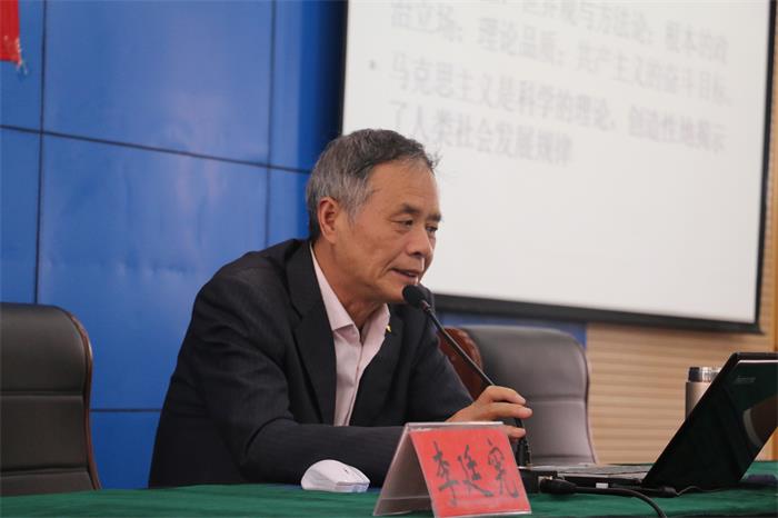 李廷宪教授从“青年老员工党员的青年马克思主义者的关系”引入,深刻地阐述了“什么是马克思主义”、“马克思主义与中国共产党的关系”、“什么是马克思主义者”以及“马克思主义者与共产党员的关系”。接着,李教授谈到了当前青年党员要成为青年马克思主义者的三种时代困局,即信仰的困局、青年社会性与政治性失去的困局和青年老员工党员要成为青年马克思主义者在能力与利益上的困局,强调了老员工党员要坚定信仰,树立理想,面对复杂的社会环境要做出正确的价值判断和价值选择。最后,李教授以“青年老员工做怎样的青年马克思主义者”结尾,号召广老员工党员要有人民情怀、有社会担当,并勇于实践,做一名信仰坚定、务实工作、不断学习的青年马克思者。