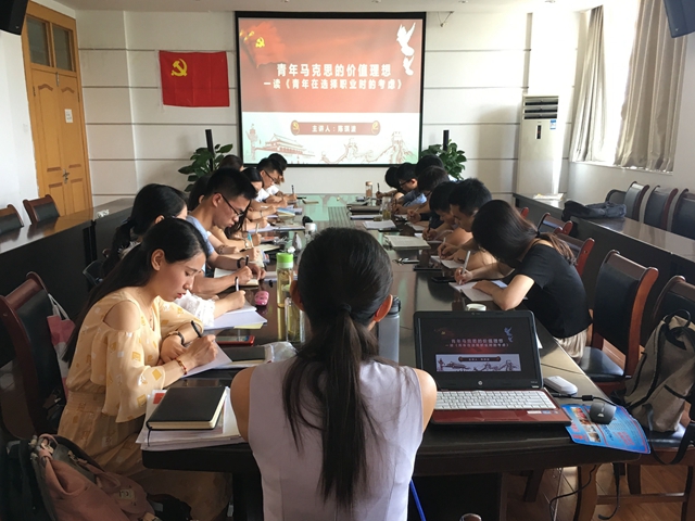 首先,陈琪波主讲了题为《青年马克思的价值理想——读< 青年在选择职业时的考虑>》的党课。陈琪波从确立价值理想:为人类幸福而献身,实现路径:选择最能为人类幸福而工作的职业,青年马克思的价值理想对当代青年的启示三个方面进行讲解。她认为,在马克思诞辰200周年之际,支部党员一起读原文、悟原理具有重要的意义,也能为自己的人生选择指引方向。马克思在《青年选择职业时的考虑》这篇文章中虽然没有提出什么价值观的理论,但是可以清晰地看到中学时期马克思的价值立场。青年马克思的这种崇高价值理想也给同学们择业带来很大的启发,在择业过程中要秉持严肃思考的态度,要充分考虑择业的主客观条件,要将追求人类幸福和自身完美作为择业过程中的主要指针等。