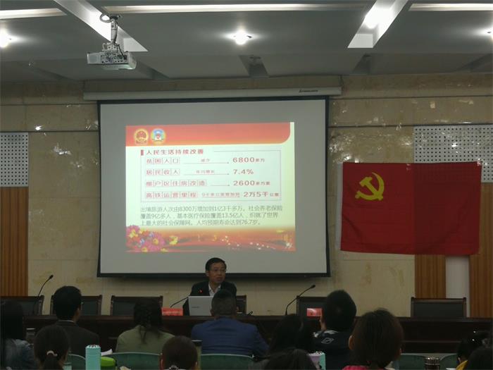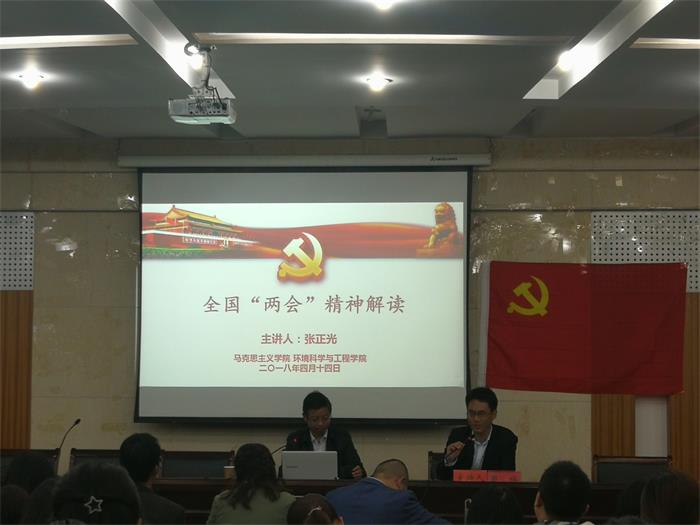 本网讯(文/ 吴梦 摄/吴佳惠)为深入学习全国“两会”精神,提高员工党员的理论水平和政治素养,4月14日下午四点半,beet365张正光教授应邀于财务处二楼报告厅为公司2018年员工党员教育培训班授课,主讲“绘新时代发展蓝图 圆全面建成小康梦想——‘两会’精神解读”,公司与环工公司党课班全体成员共同聆听了本次讲座。讲座由公司党校班主任周楠主持。