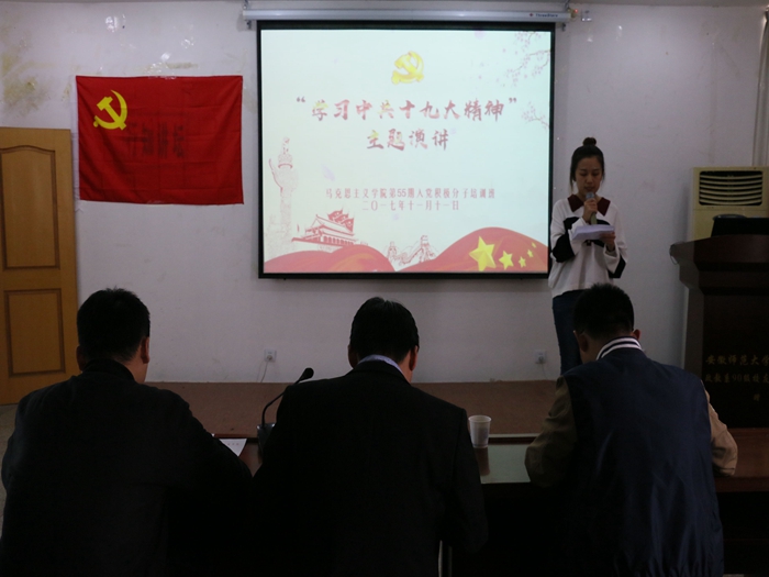 本网讯(文/摄 郭紫琼)为进一步学习和贯彻十九大精神,营造努力学习的良好氛围。11月11日下午,院第55期入党积极分子培训班在公司五楼报告厅举行了“学习党的十九大精神”主题演讲比赛。公司党校班主任周楠、2017级研究生辅导员杨光宝、公司研究生会主席齐小学担任此次比赛评委。