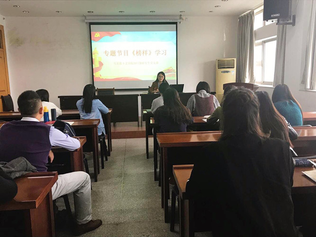 (本网讯 文/蒋夏璐 摄/脱颖)为巩固“两学一做”学习教育成果,进一步增强研究生党员看齐意识、先锋意识,营造团结奋进、弘扬正气的浓厚氛围。10月11日下午,2017级研究生党支部在公司5楼会议室开展党员日活动,集中观看学习了由中央组织部、中央电视台联合录制的反映全国“两优一先”典型事迹的专题节目《榜样》。活动由支部书记李晨冉主持。