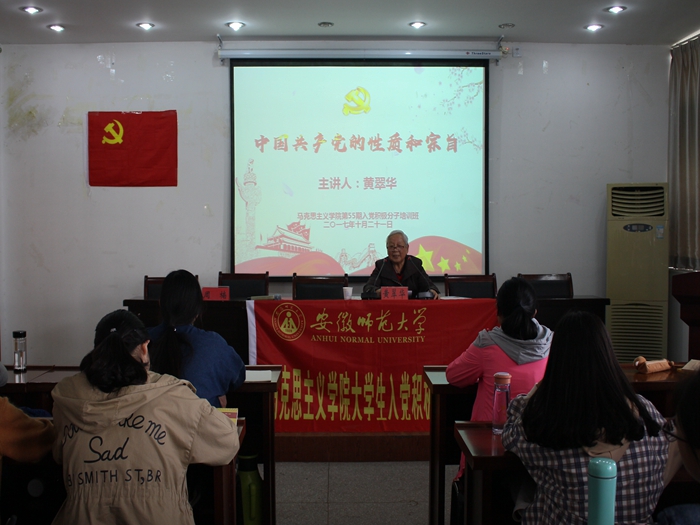 本网讯(文/摄 王春秀)10月21日下午,黄翠华教授应邀为第55期入党积极分子培训班授课,讲授“中国共产党的性质和宗旨”。