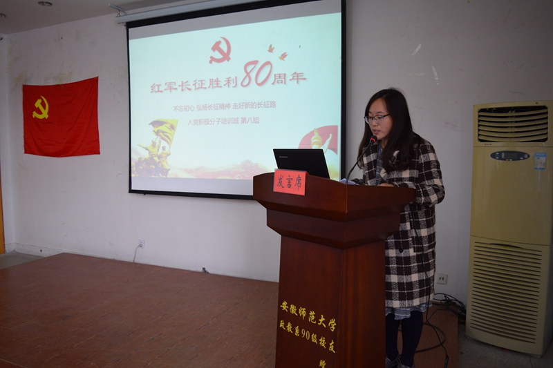 本次学习会以小组为单位,以汇报交流的形式展开。六个学习小组的汇报人分别从不同的视角,阐述了各组同学对习近平总书记在纪念长征胜利80周年大会上发表的重要讲话精神的理解。贾曼汇报小组从“长征概况”、“图说红军长征”、“学习长征讲话”三个方面,由浅及深,全面而深刻地向大家介绍了工农红军长征的伟大壮举;分析了习近平总书记在讲话中对长征精神的总结和概括;讲述了在以全面建成小康社会为目标的今天,作为青年员工学习并贯彻伟大长征精神的实践方式。王诗茹汇报小组全面解读了习近平总书记的重要讲话,从对讲话精神的深入分析中总结出“长征是一场怎样的远征”、“长征精神是什么”和“走好今天长征路的六个‘必须’”。其他各小组也根据各自的主题,以各具特色的方式对长征精神及其当代内涵进行解读。在革命先烈的伟大事迹中,同学们再次深刻领会到长征精神的价值意义。