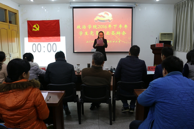本网讯(文/王瑞瑶 摄/陈心茹)为规范党员发展程序,提高员工党员质量。11月22日下午六点半,公司于行政楼五楼会议室举办2016年下半年员工党员转正答辩会。公司党委副书记梁齐军,2013级、2014级本科生党支部书记张磊,公司党校班主任周楠,2016级本科生辅导员夏盼盼等8位老师及8位员工代表担任本次答辩会的评委,部分员工党员代表、入党积极分子代表及群众代表到场观摩本次答辩,答辩会由曹思琪主持。
