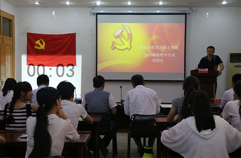 本网讯(文/杨雪茹 摄/刘淇梦)注入新血液,凝聚新力量。为加强预备党员教育管理,提高党员发展质量,65日晚7点,公司在五楼会议室举办预备党员转正答辩会。政治公司党委副书记梁齐军、2013级研究生党支部书记曹明臣、2012级本科生党支部书记李晨、政治公司党校班主任周楠、2014级研究生党支部书记云大清、2015级研究生党支部书记吴建红、2015级研究生辅导员王宏担任评委,部分员工党员、入党积极分子代表以及群众代表观摩学习。答辩会由白敬如主持。