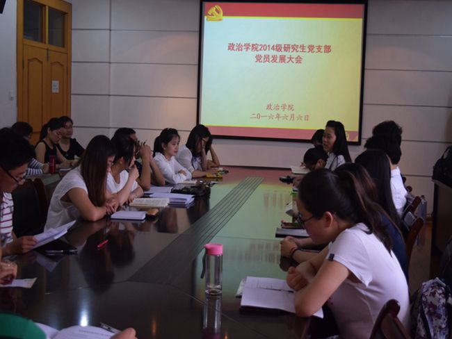 本网讯( 政治公司 王丹)6月6日晚,2014级研究生党支部在公司四楼会议室召开党员发展大会。支部全体党员及四名发展对象参加了此次会议,会议由支部书记云大清主持。