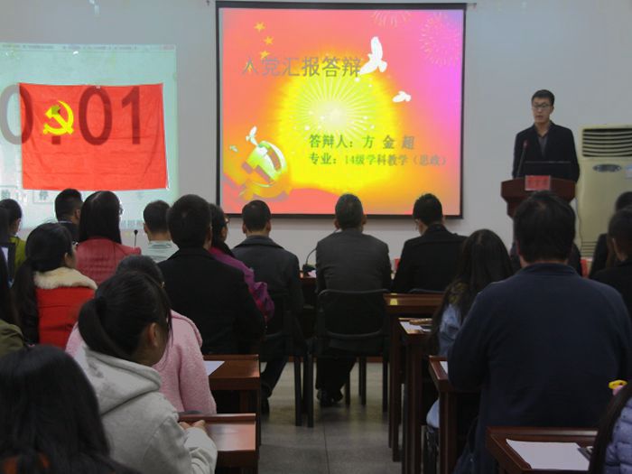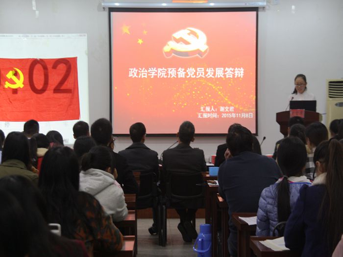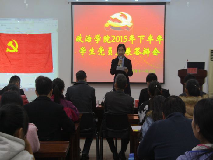 本网讯(文/摄 范冉冉)为进一步健全党员发展工作制度,遵循党员发展工作方针,公司于11月8日18时在公司行政楼五楼会议室举办2015年下半年员工党员发展答辩会。公司党委副书记梁齐军、2013级研究生党支部书记曹明臣、2013级本科生党支部书记张磊、2012级本科生党支部书记李晨、公司党校班主任周楠、2014级研究生党支部书记云大清、2014级研究生辅导员柯淑群、2015级研究生辅导员吴建红和王宏等9位老师,以及部分党员代表担任评委,公司第53期入党积极分子到场观摩学习。本次答辩会由白敬如同学主持。