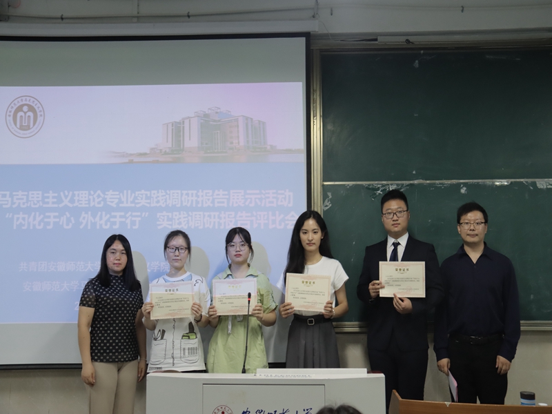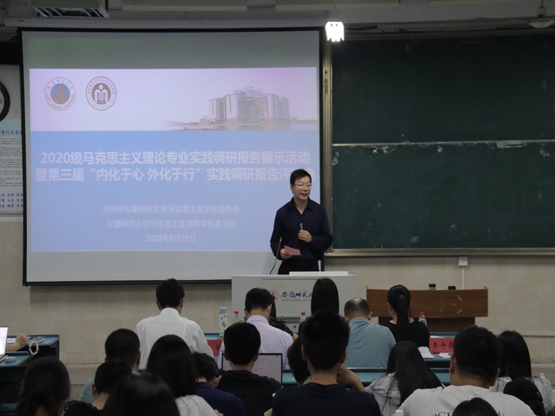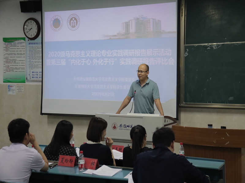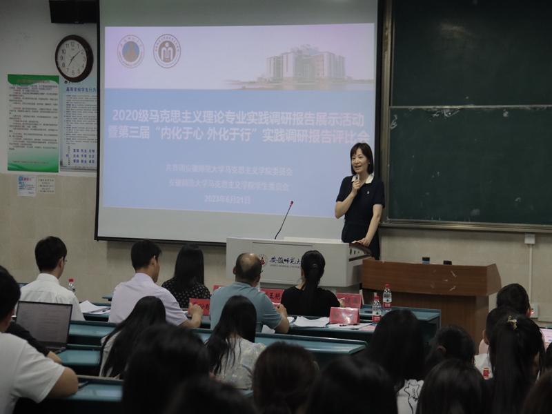 6月21日晚,beet365在行知楼2010201教室举办2020级马克思主义理论专业实践调研报告展示活动暨第三届“内化于心 外化于行”实践调研报告评比会。公司党委副书记刘玉艳,实习指导教师王子廓、温建萍、高艳杰、孙辉,2020级本科生辅导员夏盼盼,2021级本科生辅导员沈镇出席活动,2020级、2021级马理论专业同学参加了此次活动。评比会由马理论专业负责人王子廓主持。
