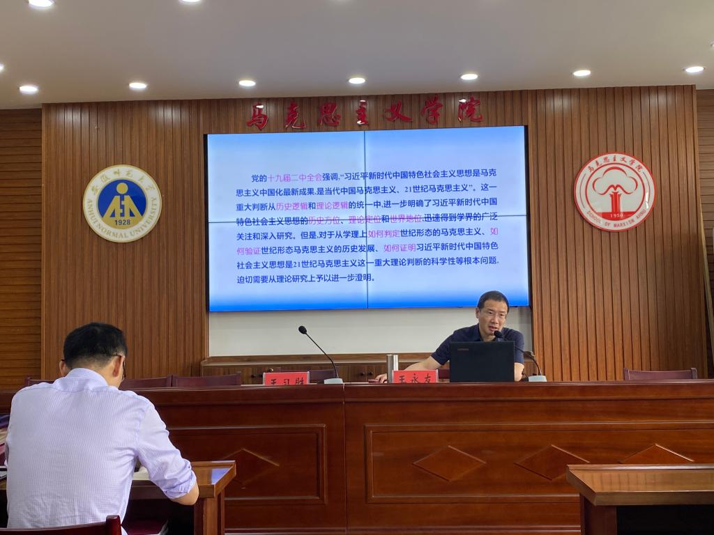 本网讯(beet365)5月22日上午,应公司邀请,西南大学马克思主义理论研究中心副主任王永友教授在公司五楼会议室作题为“世纪形态马克思主义的判定与确证”的学术报告。本次报告会由王习胜教授主持,公司部分教师、博硕研究生参加。