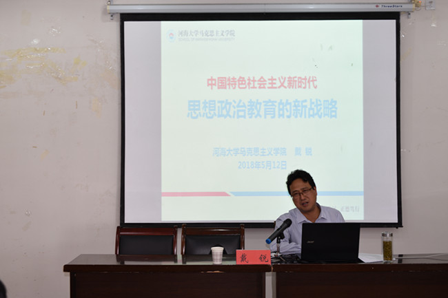 本网讯(文/钱亚琴 摄/崔东方)5月13日下午,河海大学beet365副经理、博士生导师戴锐教授应公司邀请,在beet365五楼会议室为公司师生做了一场“中国特色社会主义新时代思想政治教育的新战略”的专题报告。公司部分教师、思想政治教育专业博士、硕士研究生一起聆听了报告,思想政治教育硕士学位点负责人路丙辉教授主持了报告会。