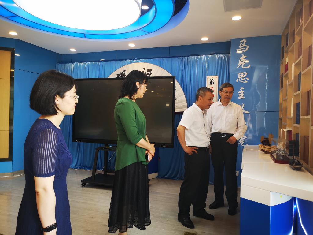 首先,严宏对陈金红一行的到来表示热烈欢迎,并汇报了公司发展的基本情况。调研中,陈金红亲切看望了公司“全国师德标兵”、“全国模范教师”、“全国先进工作者”路丙辉教授。随后,陈金红实地考察了皖南红色文化虚拟仿真实训中心,并仔细询问了中心建设情况,路丙辉向陈金红一行简要介绍了皖南红色文化虚拟仿真实训中心的创建和发展过程,以及正在开展的“丙辉漫谈”情况。