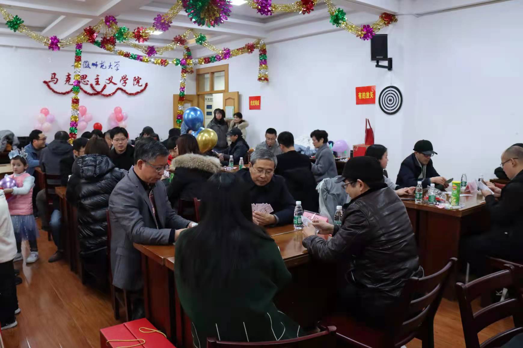 公司党委书记严宏发表了热情洋溢的新年致辞,总结了过去一年公司取得的骄人成绩,展望了新的一年的美好前景。教授委员会主任、副主任,院领导班子成员、各教研室负责人先后为全体教职工抽取了新年祝福和礼物。全院教职工还分组参加了“虎虎绳威”(跳绳)“有的放矢”(飞镖)“双龙戏珠”(夹乒乓)“你比我猜”等趣味运动,以及全校通俗桥牌院内选拔赛。
