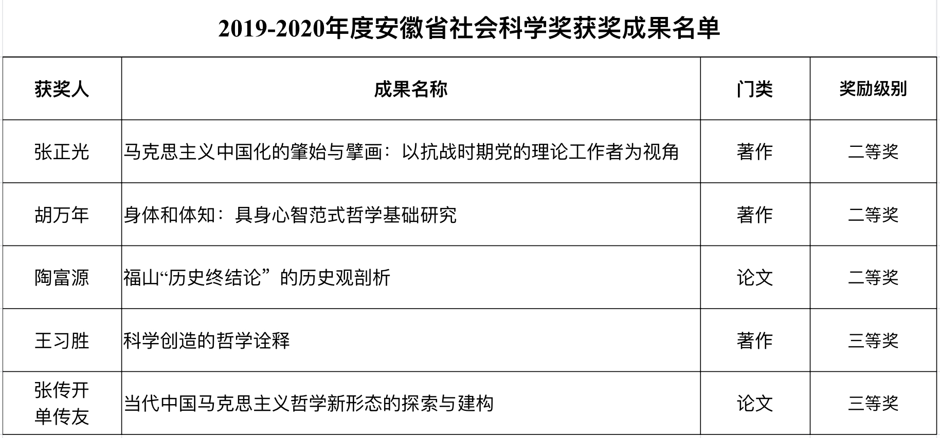 近日,安徽省人民政府批复了2019-2020年度安徽省社会科学奖获奖名单,公司共计5项成果获奖,具体名单如下: