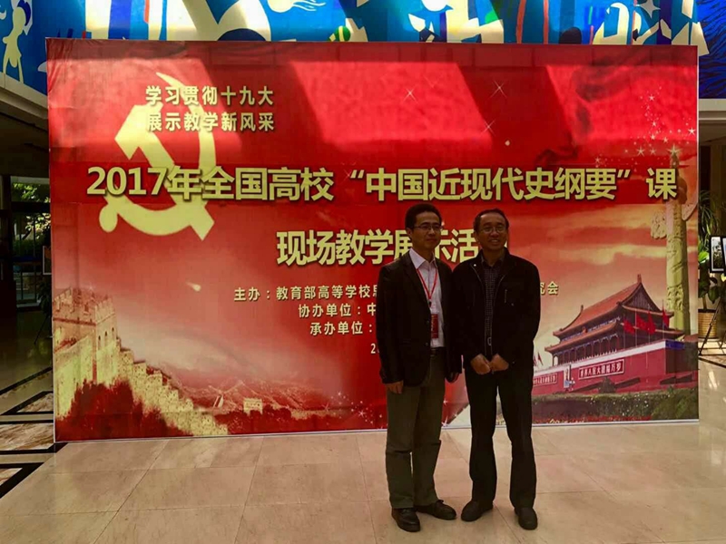 活动分为两个部分。首先由教育部高等公司社会科学发展研究中心主任王炳林教授、北京大学仝华教授、华南师范大学陈金龙教授分别作了《历史性变革与新时代的理论创新——学习贯彻党的十九大精神》、《将党的十九大精神融入“中国近现代史纲要”课的几点思考》、《党的十九大精神与高校思想政治理论课的研究与教学》的专题报告。随后,开展现场教学展示。按照活动规则,来自各省市的已经经过层层选拔、通过教育部网络平台初评而获得推荐资格的60名优秀教师分3组进行现场教学展示;现场教学展示每名选手授课15分钟,答辩5分钟。经两天激烈而又紧张的角逐,评委会共评出全国高校思想政治理论课教学标兵6人,教学能手12人,教学骨干42名。公司崔明海老师以精炼的教学内容、精美的教学设计、娴熟的教学功夫、优雅的教学姿态获得评委会高度评价、取得优异成绩,最终被推选为2017年“全国高校思想政治理论课教学标兵”。
