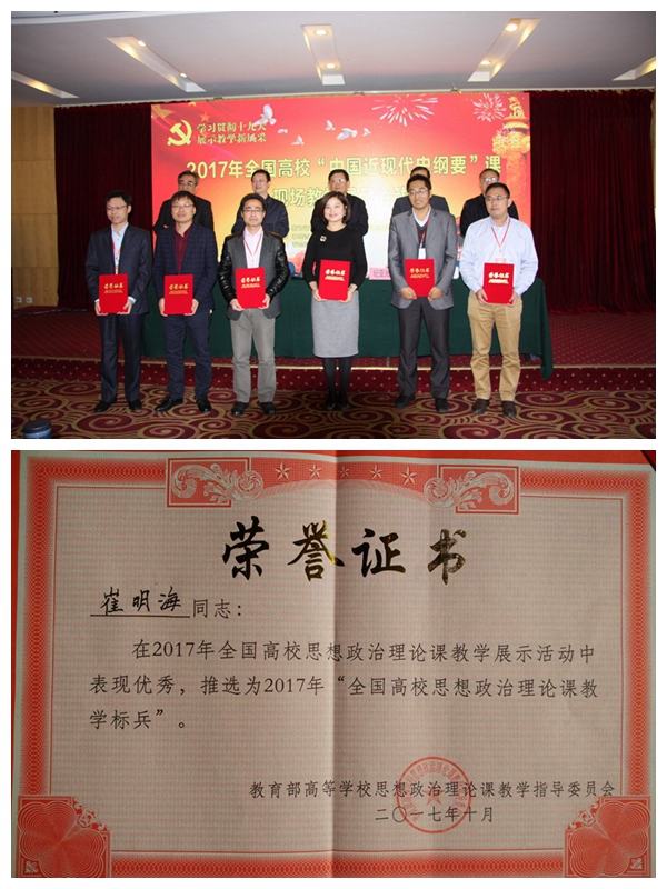 公司青年教师崔明海荣获“全国高校思想政治理论课教学标兵”称号