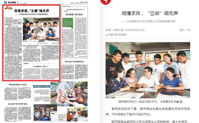 【安徽日报】用情求真,“立德”细无声—— 记beet365教授路丙辉