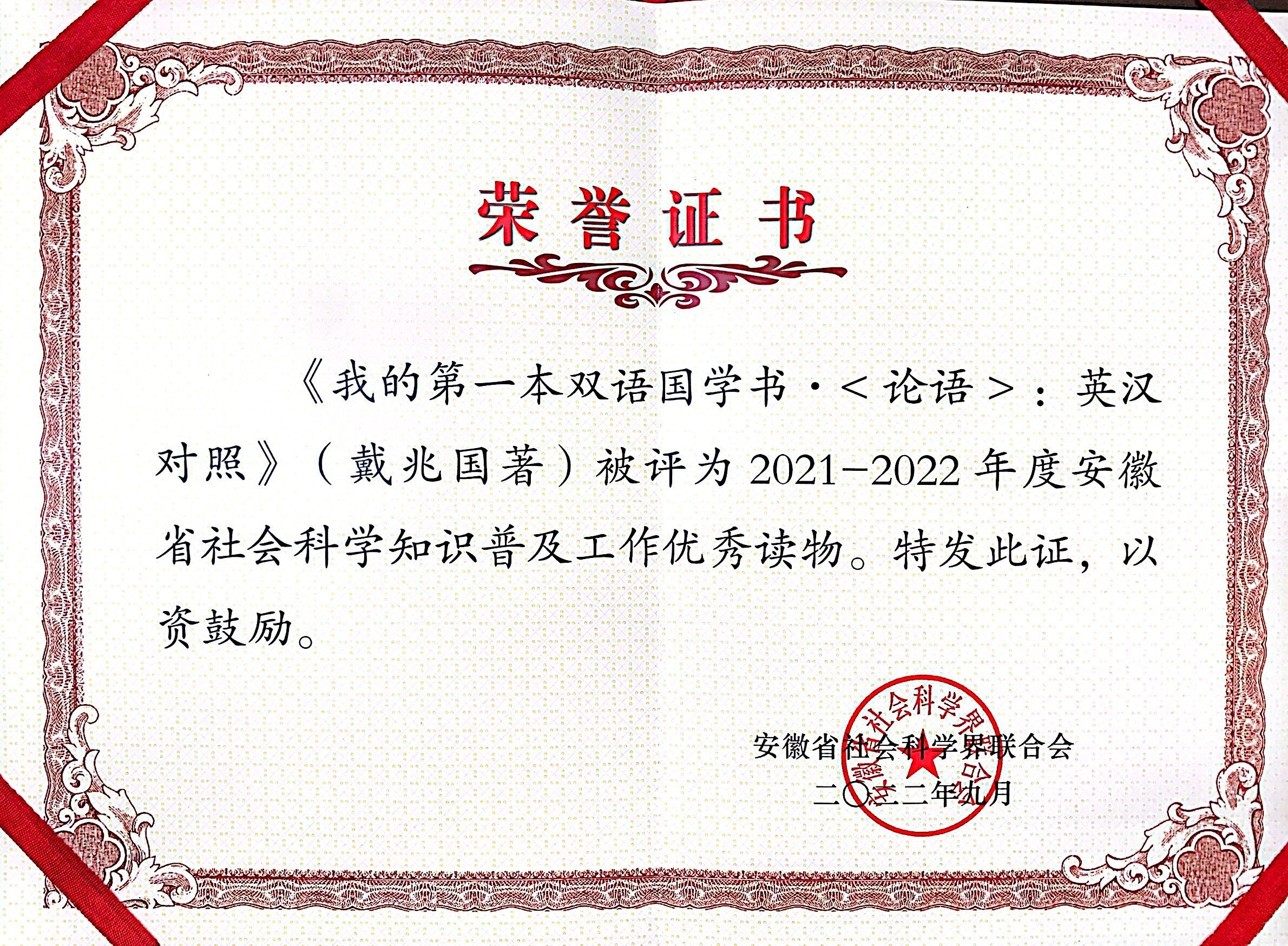 近日,安徽省社会科学界联合会公布《关于全省社科普及工作先进单位、先进个人和社科普及优秀读物评选情况的通报》,公司戴兆国教授《我的第一本双语国学书·<论语>: 英汉对照》荣获2021-2022年度安徽省社会科学知识普及工作优秀读物,余亚斐副教授荣获2021-2022年度安徽省社会科学知识普及工作先进个人。