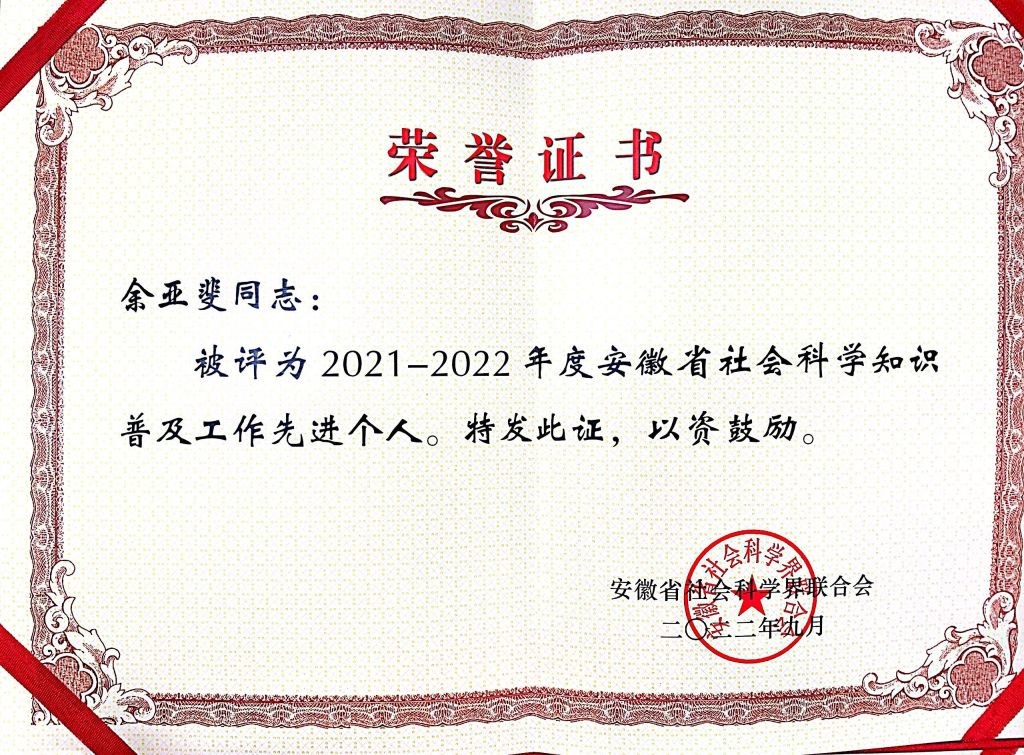 公司戴兆国教授、余亚斐副教授荣获全省社科普及工作奖项