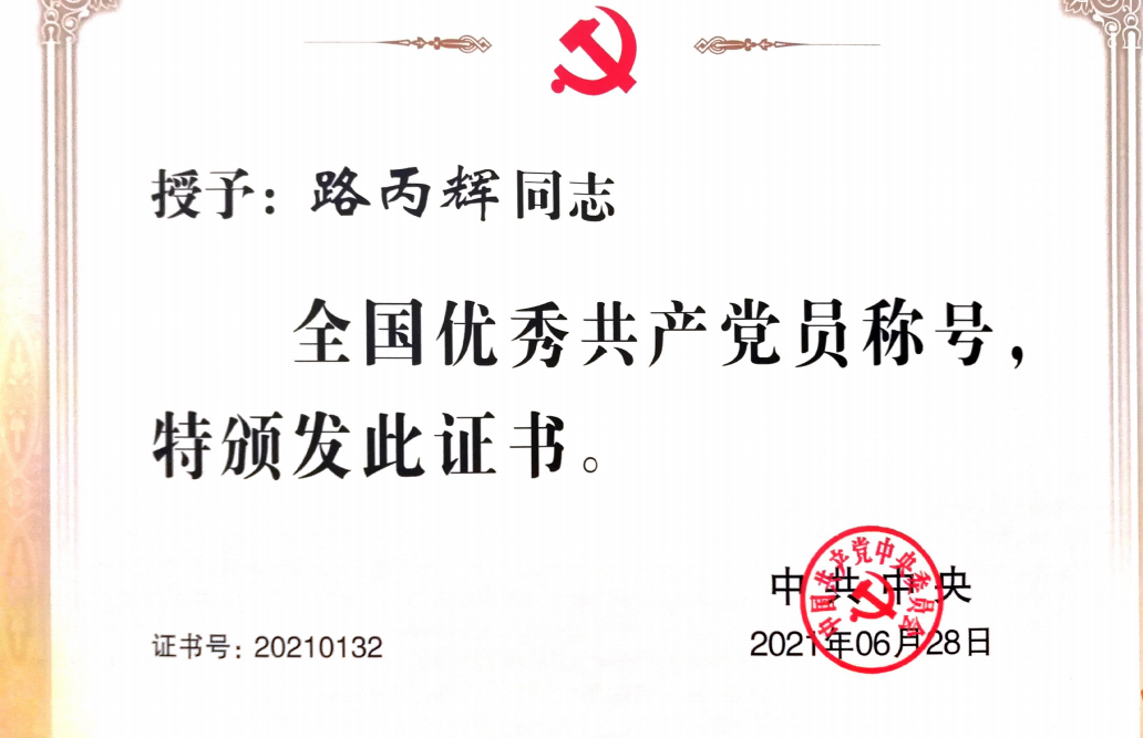 beet365路丙辉同志荣获“全国优秀共产党员”称号
