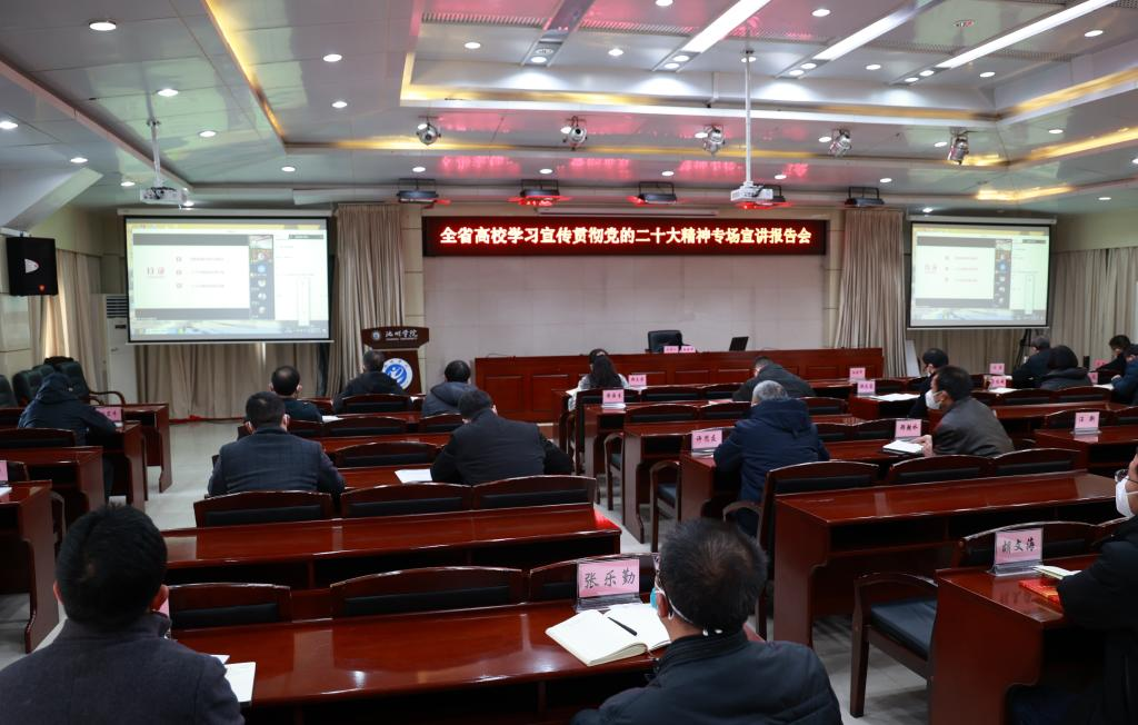 按照省委教育工委统一部署,12月21日,全省高校学习宣传贯彻党的二十大精神专场宣讲报告会在池州公司举行。公司副经理、省委讲师团高端宣讲专家、省高校师生巡讲团成员李祥兴教授应邀在线上作专题宣讲报告。池州公司党委书记孙晓峰主持报告会。池州公司党委理论学习中心组成员,部门主要负责同志、二级公司党政主要负责同志集中收看了报告会。
