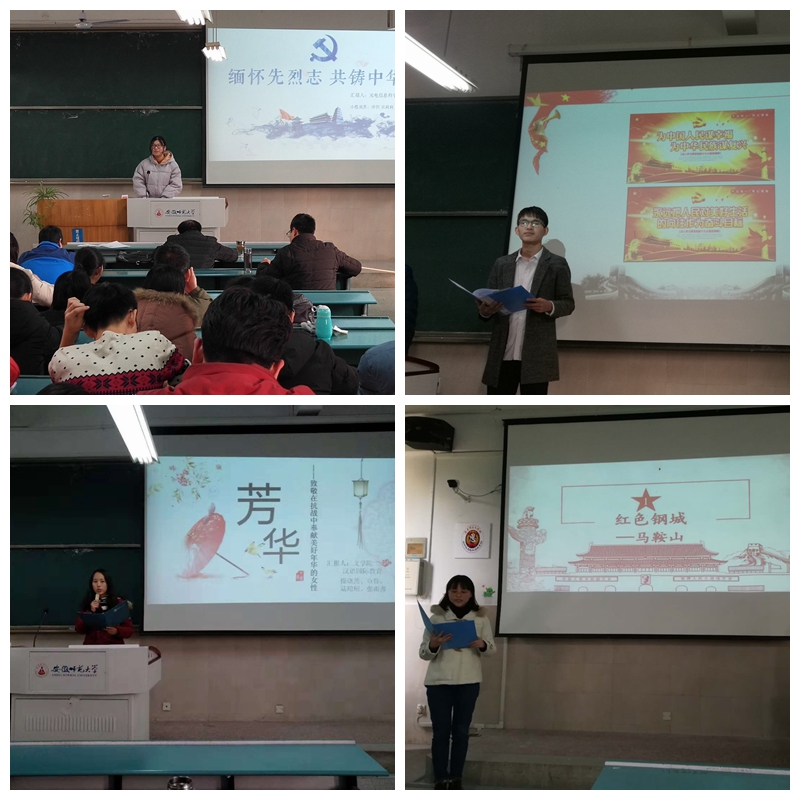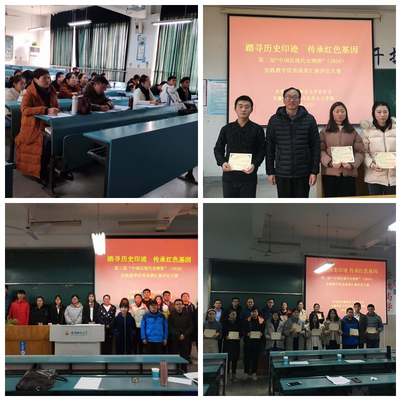 2018年12月12日下午,“中国近现代史纲要”课程组分两个校区同时举办了全校“纲要”课实践教学活动优秀成果汇报评比大赛。来自全校2017级“纲要”课教学班的51个优秀小组参加了活动,课程组全体专兼职老师担任了大赛评委。