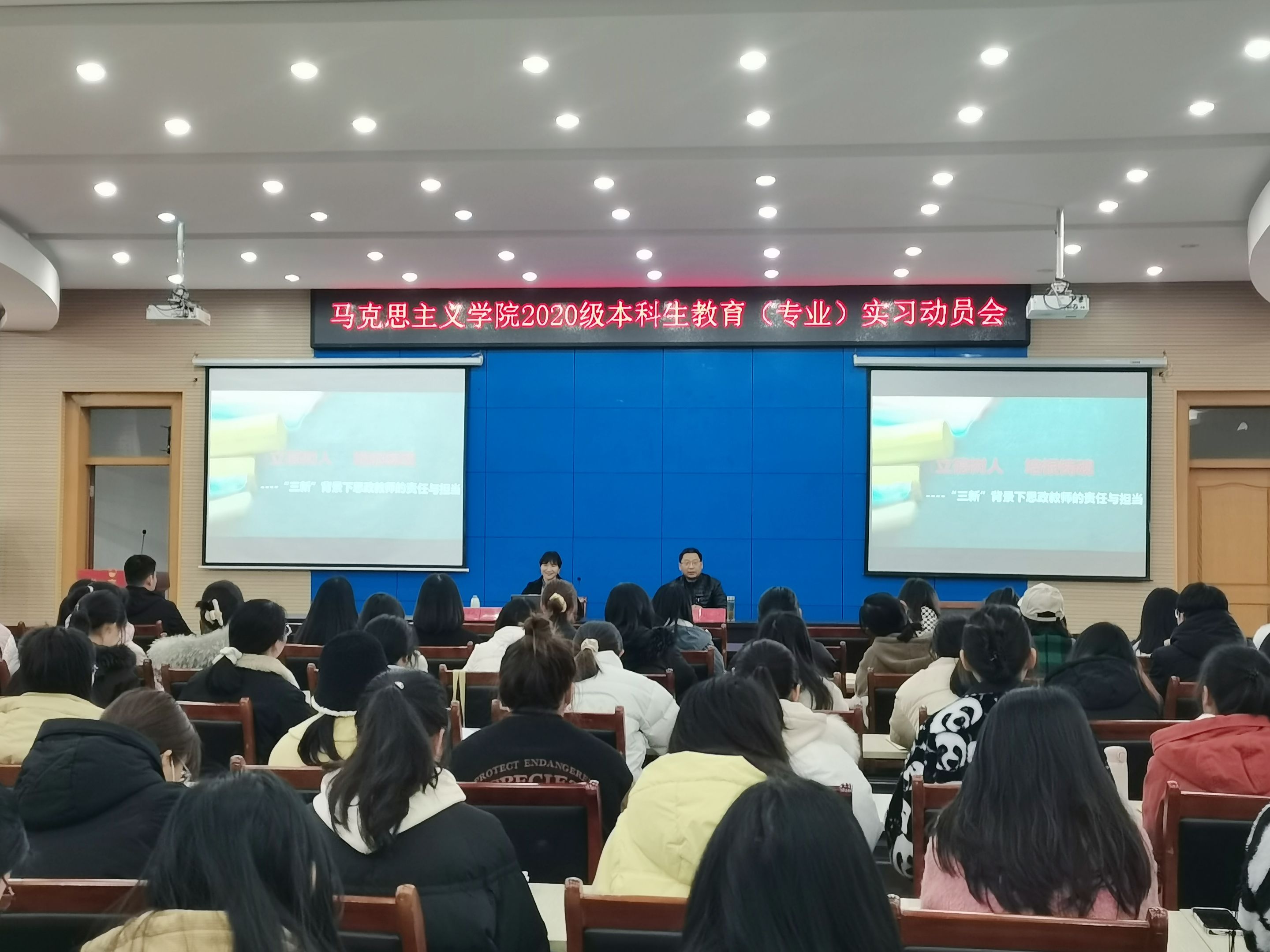 本网讯(文/摄 方乙婷)为切实加强思想政治教育国家一流本科专业建设、助力推动基础教育振兴,也为提升职业认同、投身教育实习,2月24日下午,公司在花津校区圆形报告厅二楼会议室举行2020级旗下产业实习专题辅导报告会。报告会邀请安徽省“教坛新星”、合肥市首届高中政治学科骨干教师、合肥市高中政治学科带头人岳梅老师主讲,赵冰副经理主持,公司2020级全体本科生聆听了专家报告。
