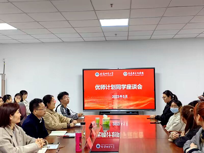 座谈会上,赵冰从“优师计划“的重要地位和突出作用入手,对“优师计划”的培养方案、团队配备、未来发展方向作了详细介绍,鼓励同学们要锻造传道授业解惑过硬本领,夯实专业基础,提高自身综合能力,努力成长为党和人民满意的“四有”好老师。朱晴、周于皓等同学就教学管理、毕业要求、实习锻炼、就业发展进行了畅谈,与会领导逐一进行解答。