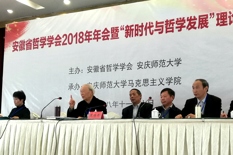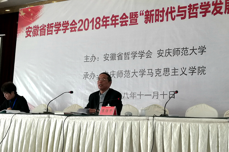 本网讯(马克思主义公司 王子廓)2018年11月10—11日,安徽省哲学学会2018年学术年会暨“新时代与哲学发展”理论研讨会在安庆师范大学隆重举行,公司臧宏教授、陶富源教授、张传开教授、汪盛玉教授、单传友副教授、张涛副教授、王子廓老师应邀参会。