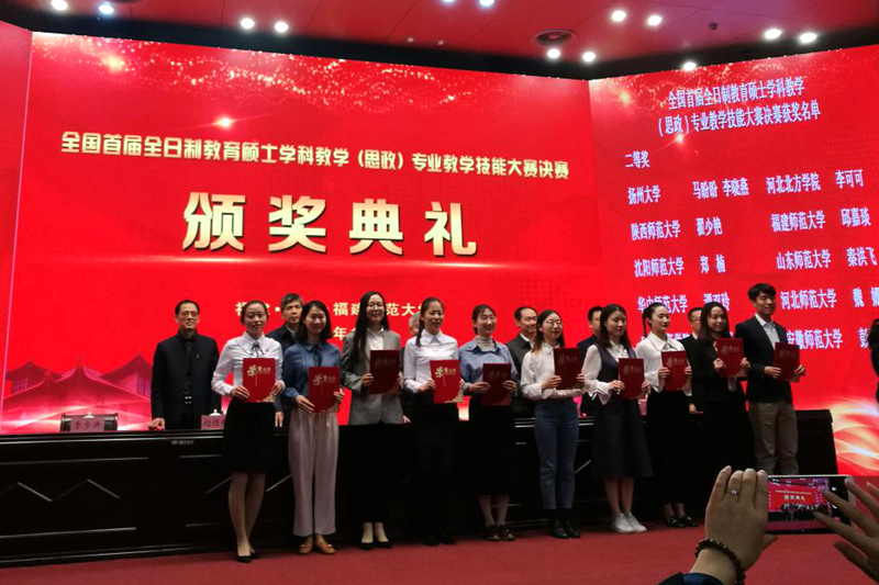 2018年11月21日至23日,由全国教育专业学位研究生教育指导委员会主办、福建师范大学承办的首届全国全日制教育硕士学科教学(思政)专业教学技能大赛(决赛)在福州成功举办。本次赛事是为了进一步展示全日制教育硕士的培养成果,促进院校之间的相互交流,不断提高学科教学(思政)专业教育硕士研究生的培养质量。来自北京师范大学、东北师范大学、华东师范大学、华中师范大学、华南师范大学等44所高校的62位优秀硕士生参加了决赛。