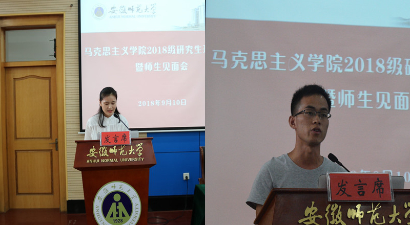 2016级中共党史专业硕士研究生齐小学代表在校生发言。他结合自己两年的研究生学习和工作经历,鼓励同学们笑对改变,勇敢迎接挑战,不断进行尝试,坚守内心选择。2018级马克思主义中国化研究专业硕士研究生王淑梅代表新生发言。她表示在接下来的学习和生活中要虚心接受导师教诲,多读书、勤思考,秉承思想至真,政治至善,教育至美的院训,努力做一名优秀的研究生。