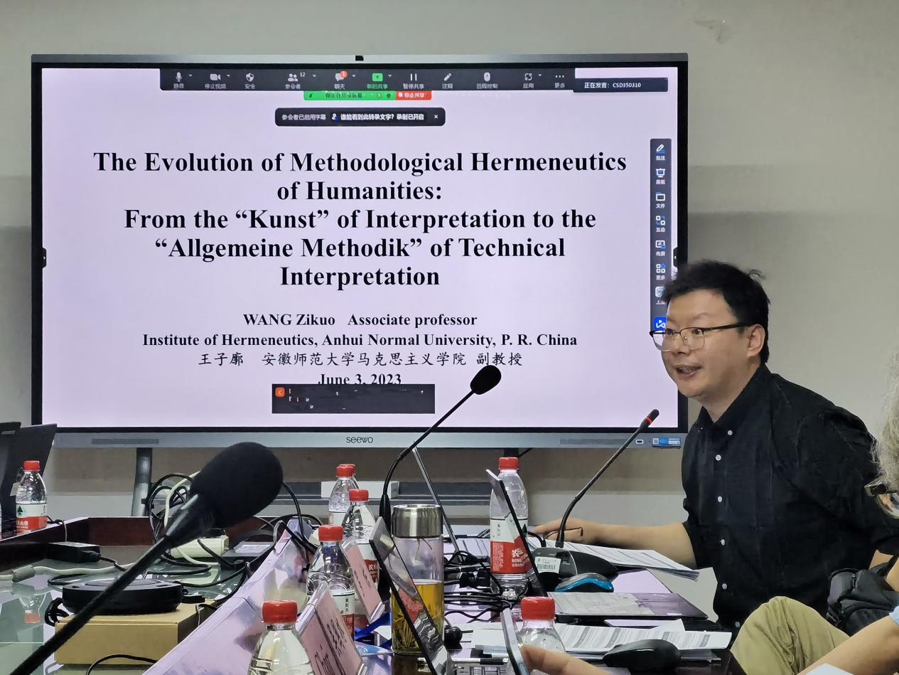 6月2日,汪盛玉教授主持会议第二阶段的大会研讨,来自俄罗斯的Alexander Nesterov and Anna Demina、ZHU Yingyu以及中国学者朱诗勇、林润燕等就技术知识、技术评估等问题展开了热烈讨论。6月3日,余亚斐副教授作《境界与诠释:中国经典诠释中的境界的诠释循环》主题的报告,王子廓副教授作《The Evolution of Methodological Hermeneutics of Humanities: From the “Kunst” of Interpretation to the “Allgemeine Methodik” of Technical Interpretation》主题的报告,并与来自德国达姆塔特工业大学学者Alfred Nordmann、Sadegh Mirzaei等进行了问答交流。