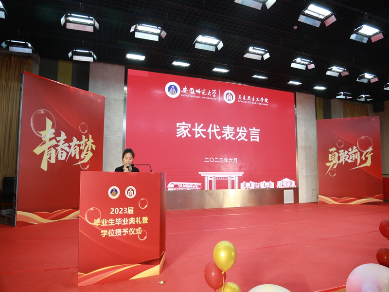 教师代表余在海深情寄语,他十分欣慰毕业生们在师大的成长,用真诚与诚实、自信与专注,乐观与开朗作为对毕业生们的最后评语。家长代表对公司的辛勤培养表达了真诚的感谢,对公司和公司的发展送上美好的祝愿。在校员工代表叶倩、梅兰葶,向学长学姐表达了感激与惜别之情,同时祝愿他们在新的人生起点上前程似锦、未来可期。毕业生代表吴俊、黄博文回顾了在师大的青葱岁月,分享了自己的求学故事和收获感悟,并对母校、老师和同学们的教导与陪伴表达衷心感谢。