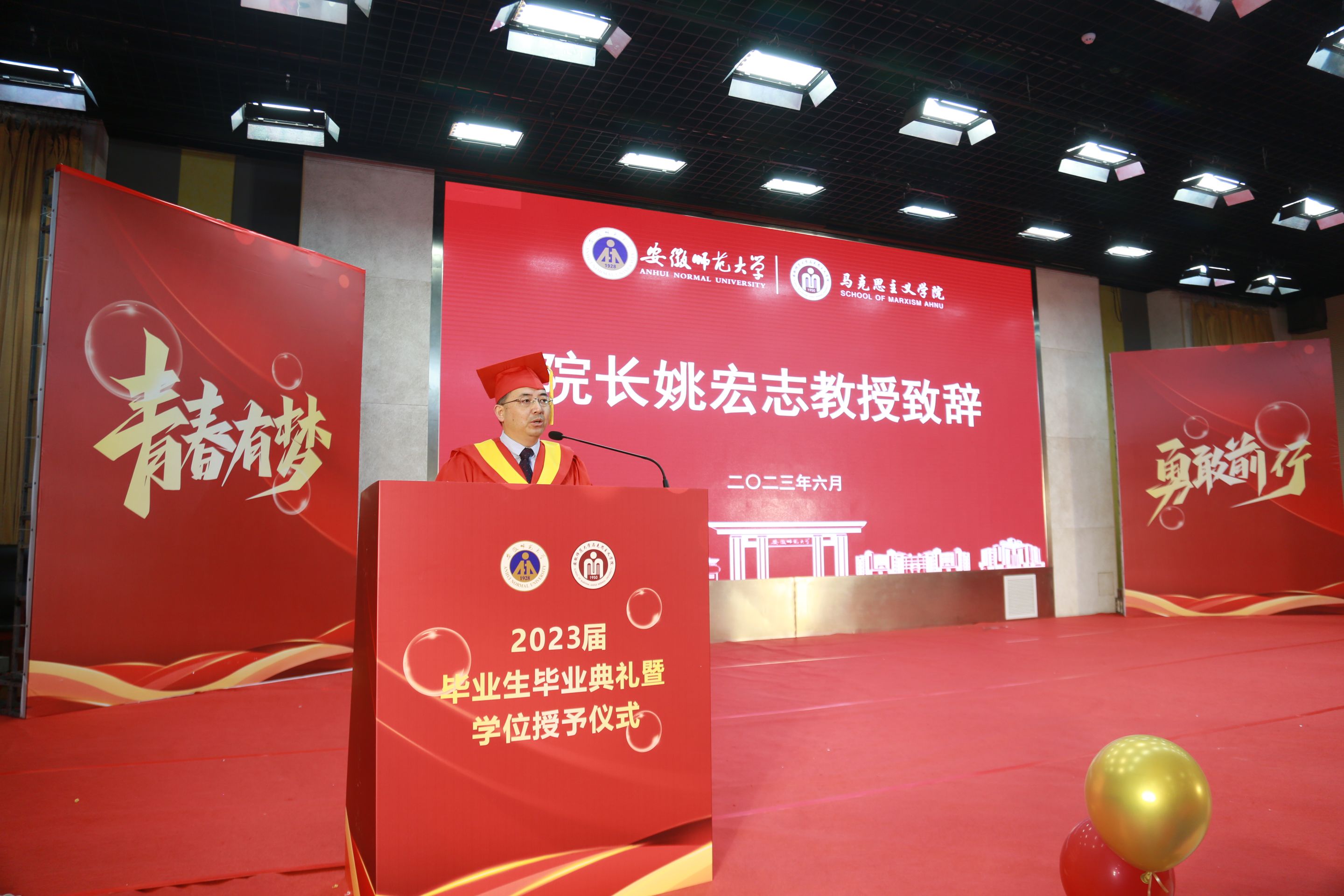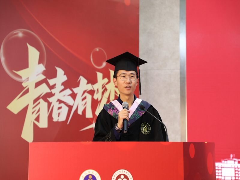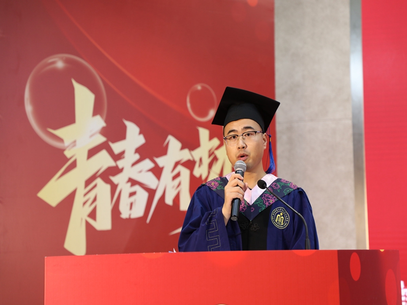 典礼开始前,伴随着毕业纪念短片,黄博文等8名员工用动听的歌声带领毕业生们重温了美好的校园时光。典礼在庄严的国歌声中拉开序幕。姚宏志发表致辞,他对毕业生们圆满完成学业表示衷心的祝贺,希望毕业生不忘初心,在未来的人生路上能够时刻保持清醒;希望毕业生能继续不懈奋斗,继续在求学或者工作岗位上再立新功;希望毕业生关注身体健康,用健康的体魄肩负起家庭和社会赋予的重任。