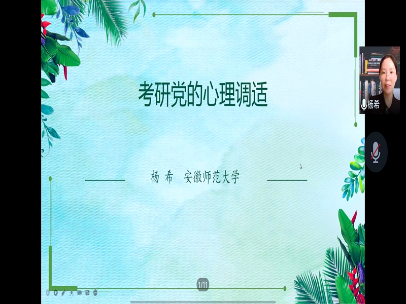 公司特别开展考研心理调适讲座,杨希副教授从“识别我的心理健康状态”“考研常见心理症候”“如何进行调试”三个方面分享如何正确应对考研过程中出现的负面情绪,指出要接纳合理情绪、管理非合理情绪、选择适当方法宣泄负面情绪。通过团体心理辅导的形式,缓解同学们考研压力和焦虑情绪。