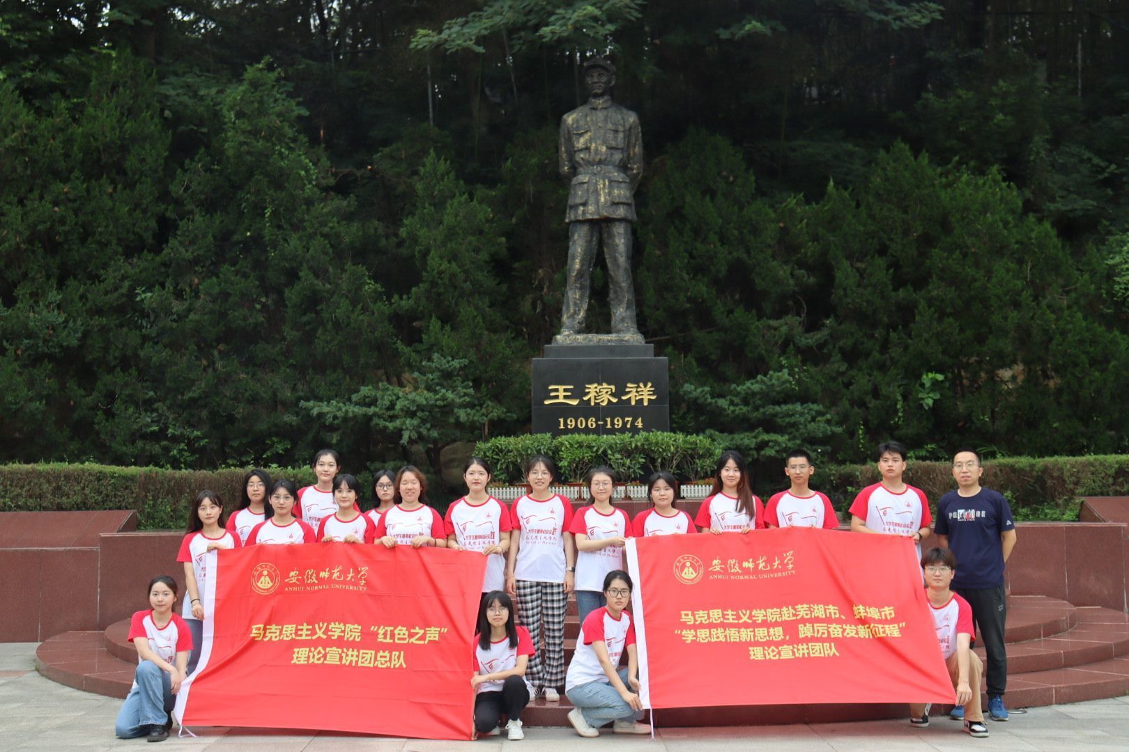 会后,团队赴王稼祥纪念园参观学习。王瀛培结合团队成员专业背景,从中国共产党思想政治教育史的角度,为大家讲授行走式团课《牢记青春使命》。