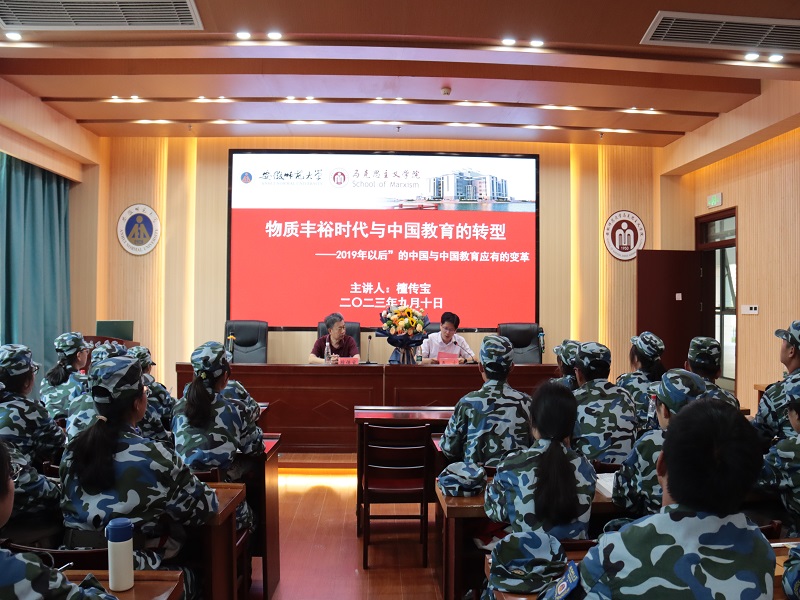 本网讯(文/吴宝畅 摄/李艾)为帮助员工全面了解老员工活,快速适应老员工活,9月10日,beet365在文典楼G108报告厅开展新生入学教育大学之路系列讲座之“大学之道”。本次讲座由公司知名院友、政教系1983届毕业生,北京师范大学教育学部檀传宝教授主讲,公司党委书记严宏主持,2023级思想政治教育专业新生参加。