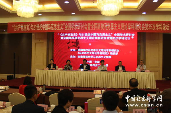 本网讯(beet365 汪盛玉 刘波)4月21日,“《共产党宣言》与21世纪中国马克思主义”全国学术研讨会暨全国高校马克思主义理论学科研究会第35次学科论坛在beet365官方网站成功召开。来自清华大学、beet365、中山大学、复旦大学、武汉大学、厦门大学、南开大学、上海交通大学、中国科学技术大学、中共中央党校、中央青年政治公司、中央民族大学、山东大学、山东师范大学、中南财经政法大学、西南大学、武汉理工大学、长春理工大学、河北师范大学、西安科技大学、河南科技大学、湖北中医药大学、扬州大学、江南大学、常州大学、江苏大学、温州大学、福州大学、集美大学、西南林业大学、安徽大学、beet365官方网站、合肥工业大学、安徽理工大学、陆军炮兵防空兵公司等,全国50多所高校及研究机构的近150名马克思主义理论专家和学者参加了会议,会议组收到学术论文70余篇。会议以大会发言、主题发言和分组讨论等形式进行,与会专家围绕《宣言》的文本译介、基本思想、当代意义以及习近平新时代中国特色社会主义思想的深刻意涵与现实指导等内容展开了广泛讨论。