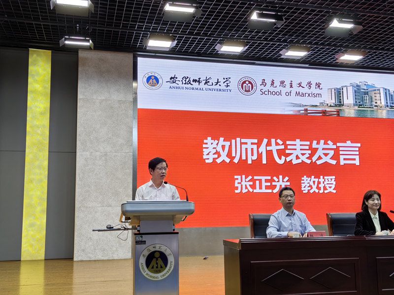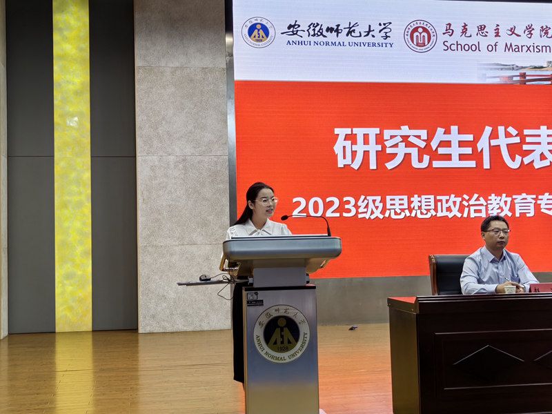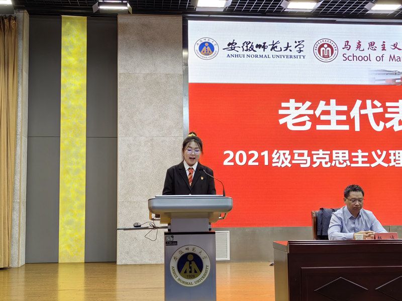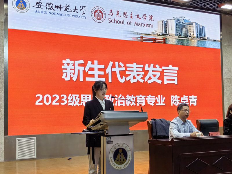 思想政治教育专业2023级本科生陈卓青回顾了十二年的学习之旅,展望了未来的大学时光,并围绕学习和工作、理论与实践的关系表作出表态。马克思主义理论专业2021级本科生范任姿作为老生代表发言。她从自己的亲身经历出发,希望同学们面对陌生的环境应勇于走出舒适区,并鼓舞同学们在新的舞台施展自己的才华,成为德智体美劳全面发展的新时代青年。2023级思想政治教育专业硕士生代表孙悦回忆自己在beet365四年的本科生活以及去四川凉山彝族自治州支教的经历,并希望同学们做到孜孜以求,求实创新和知行合一,在艰苦奋斗中将个人理想与国家命运紧密相连。