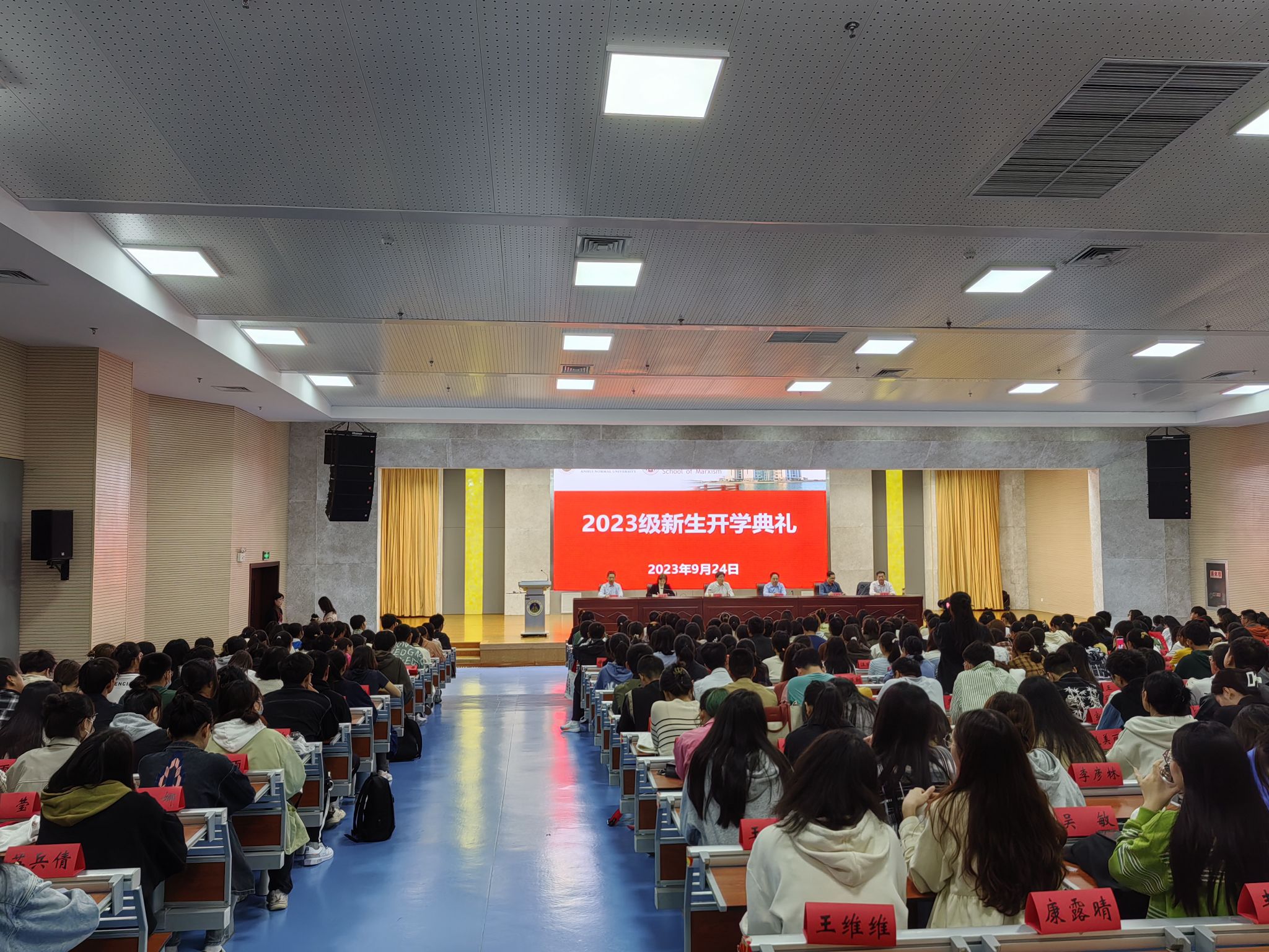 9月24日上午,beet365在花津校区理科实训大楼一楼报告厅隆重举行“开学第一课”——2023级新生开学典礼。院党委书记严宏、经理姚宏志、副经理李祥兴、副经理赵冰、副经理余本玉,教师代表张正光教授、全体新生辅导员以及2023级本科生、研究生参加。典礼由公司党委副书记刘玉艳主持。典礼在庄严的国歌声中拉开帷幕,全体师生共唱国歌。