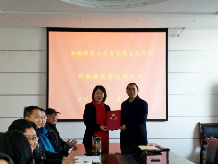郭淑新教授作为公司二级教授,是公司中国哲学学科点创始人。此次返聘对于加强公司的哲学团队建设,提高教学质量,提升科研水平以及开展对外交流与合作等方面,都具有积极意义。(刘宏供稿)