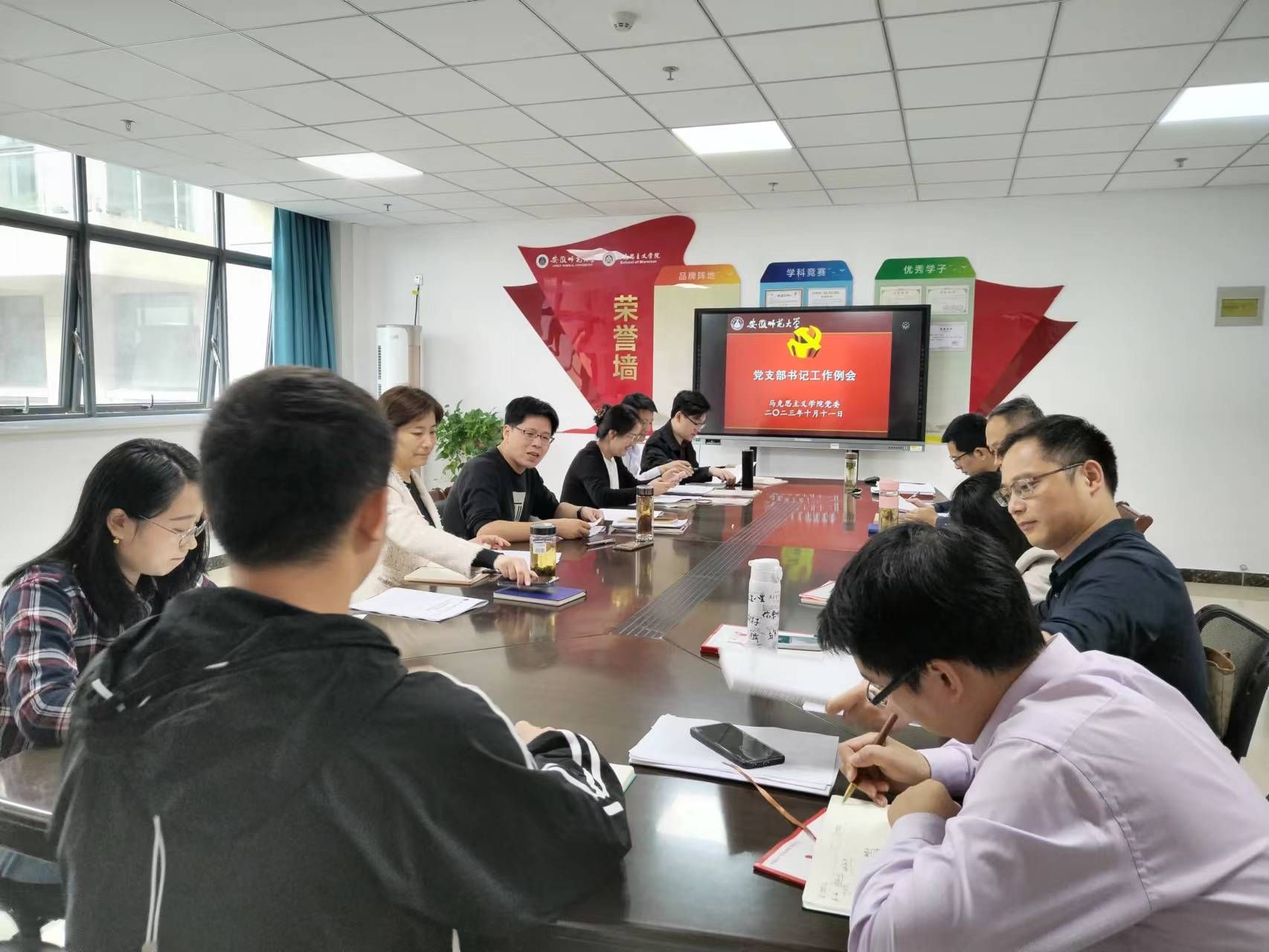 会上,先由严宏传达上级组织关于党支部建设的重要指示精神,重点解读了《中国共产党普通高等公司基层组织工作条例》。之后,刘玉艳领学《安徽省纪委监委公开通报五起违反中央八项规定精神典型问题》和《辨别是礼尚往来还是违纪违法的几点思考》。党委秘书李薇薇、研究生党支部书记陶娴静老师、季行健老师分别解读了《中共beet365官方网站委员会发展党员工作实施细则(修订)》、《beet365发展员工党员工作暂行规定》和《beet365非团员员工入党申请人推荐为入党积极分子实施办法(修订)》。与会人员就近期党员发展相关问题进行讨论。严宏在总结中强调要坚持政治标准,严格履行程序,做好党员发展工作。
