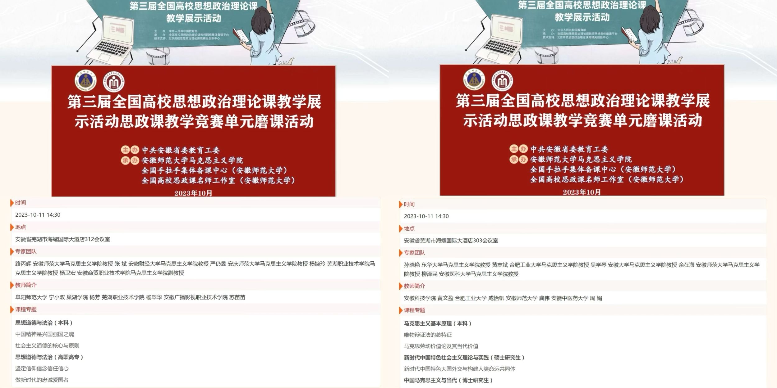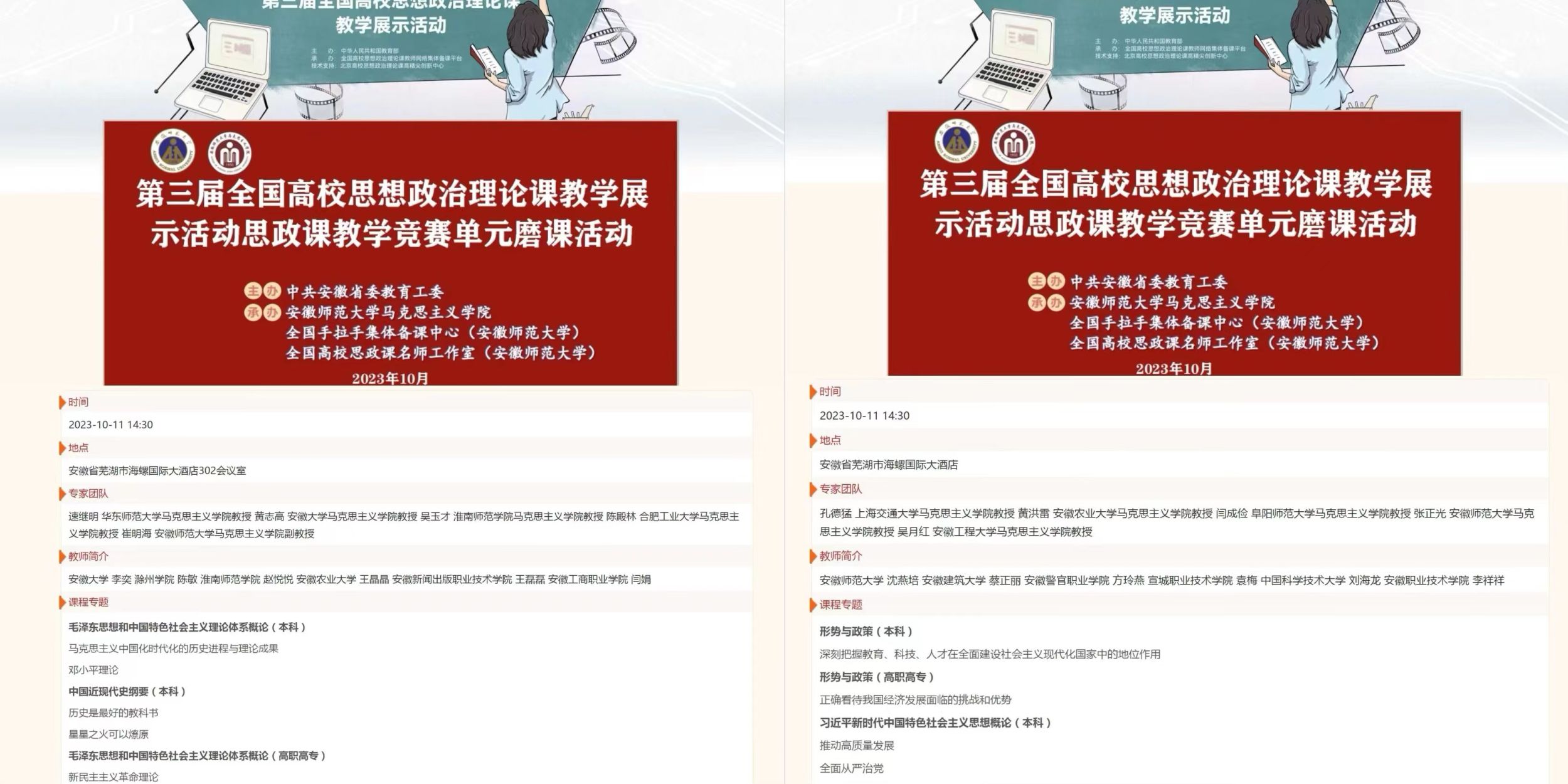 据悉,自教育部办公厅日前下发通知,决定举办第三届全国高校思想政治理论课教学展示活动时,安徽省委教育工委便高度重视本次备赛磨课活动,指导beet365、全国高校思政课“手拉手”集体备课中心(beet365官方网站-安徽省)和全国高校思政课名师工作室(beet365官方网站),按照课程分类制定活动方案、针对参赛教师实际情况进行全员全过程全方位的指导。