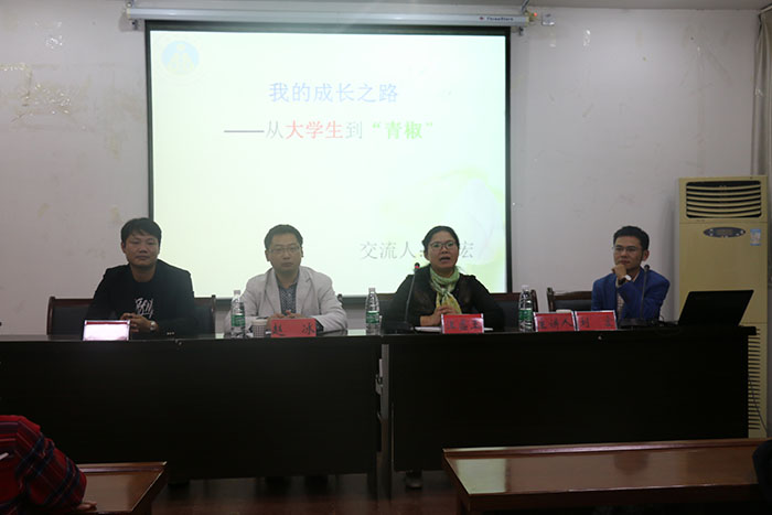 汪盛玉副经理首先向新生们介绍公司基本情况,并对刘宏老师做了详细的介绍。随后,刘宏老师以我的成长之路——从老员工到“青椒”为题,介绍了自己从大学本科至博士阶段的学习经历与人生感悟。他通过“我是谁”、“谁是我”的设问,告诉大家“我就是我”。为了帮助同学们成为更好的自己,他对同学们提出两点建议,希望同学们在学习上能培养兴趣,在生活上能改变气质。他通过“我干了什么”,介绍了自己的奋斗经历,讲述了就业和考研的两种选择各自的几种可能性,为同学以后做选择提供参考。他还和同学们分享了自己读硕读博的感受,将“不论前路几曲折,我把天地做道场”赠送给同学们,期盼同学们能有美好的未来。最后,4位老师详尽且风趣地回答了同学们的提问,师生间进行了良好的交流。