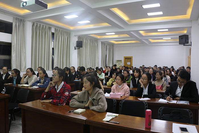本网讯(文/王海燕 摄/赵文涵)为帮助大一新生更快适应老员工活,明确自己的人生目标,公司于10月25日晚7点在五楼会议室召开“青年博士论坛”主题讲座。本次讲座由副经理汪盛玉教授主持,刘宏老师主讲,赵冰副教授、辅导员夏盼盼老师以及17级全体员工参加此次活动。