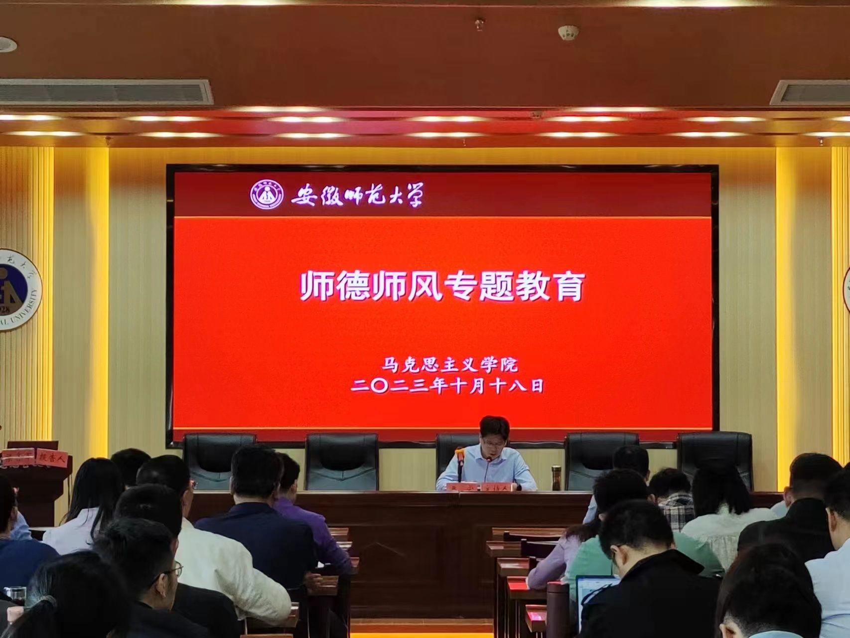 梁处长首先以习近平总书记的重要讲话开篇,进而论述公司师德师风建设的相关举措,强调公司一直以来注重师德师风建设的强化管理、规范建设、宣传教育、师德考核和价值引领;接着,借助问卷调查数据指出当前公司师德师风建设上存在的问题;之后,梁处长结合师德师风建设的相关法规制度和负面案例强调师德师风建设的重要性,督促beet365教师更应注重日常言行和教学行为,不断提高自身的综合素质。