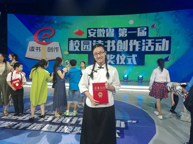 据悉,此次活动由安徽省教育工委、省教育厅、省文化厅、省新闻出版广电局和团省委联合主办,自今年2月份启动以来,在全省各地和各级各类公司引发热潮,共有300余万人参与,8500余篇作品通过各地组委会评审上报。大赛组委会通过查重和匿名评审等方式共遴选出90篇作品参加全省特等奖比赛。鲍旭婷同学对作品的精彩演绎给现场评委和观众留下了深刻而美好的印象。(《基础》课教研室报道)
