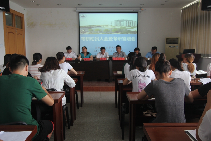 本网讯(文/范冉冉 摄/吴梦)6月27日上午,公司在公司五楼会议室召开2018届考研动员大会暨考研答疑会。公司党委书记傅绪中、教学副经理汪盛玉、党史学位点导师胡安全教授、思政学位点导师王习胜教授、哲学学位点导师余在海副教授出席动员大会。大会由公司党委副书记梁齐军主持。